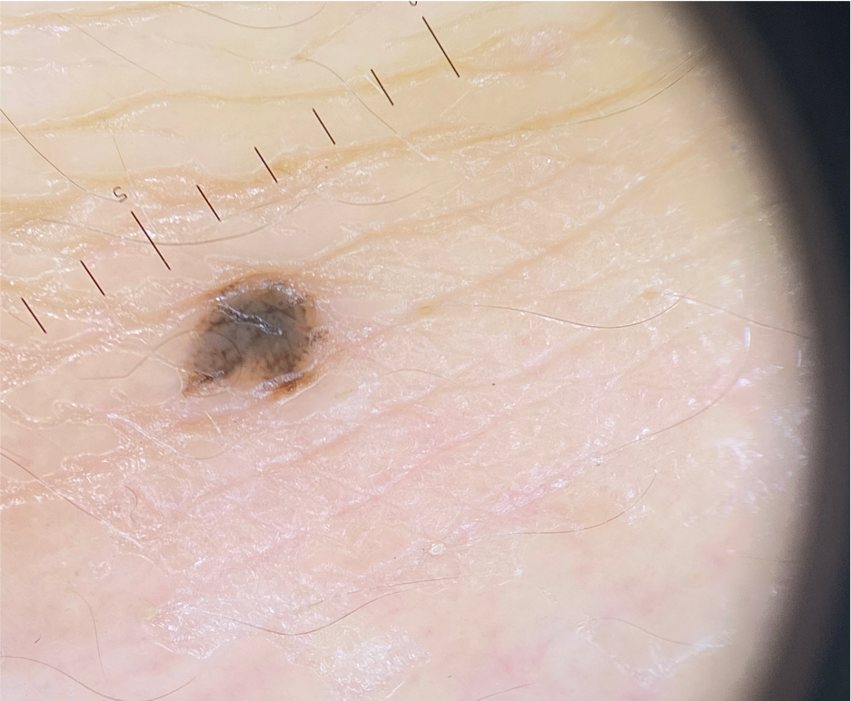 Hier jedoch besteht eben kein kausalpathogenetischer Zusammenhang. Das dermatoskopische Bild des Melanozytennävus kann trotz der geringen Größe das Vorliegen eines atypischen Nävus nicht ausschließen.