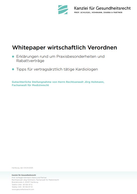 Zu diesem Thema empfehlen wir Ihnen die Sonderpublikation„Sicherheit bei Behandlung – Verordnung – Abrechnung“ von Rechtsanwalt Jörg Hohmann, Fachanwalt für Medizinrecht, und Dr. med. Fabian Stahl, niedergelassener Kardiologe.