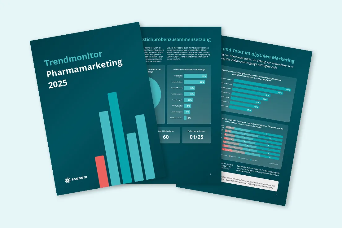 Studie kostenlos herunterladenAls Spezialist für digitales Healthcare Marketing beobachten wir bei esanum seit Jahren den Wandel in der Kommunikation der Pharmaindustrie. Mit dem Trendmonitor Pharmamarketing 2024 haben wir diese Entwicklung erstmals systematisch analysiert und dafür 60 Healthcare Marketing Experten befragt.